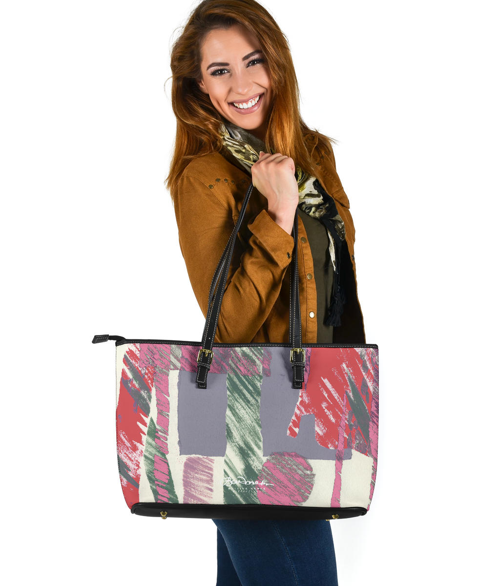 Abstract Engineered Collage Spring Colored Large Leather Tote Bag