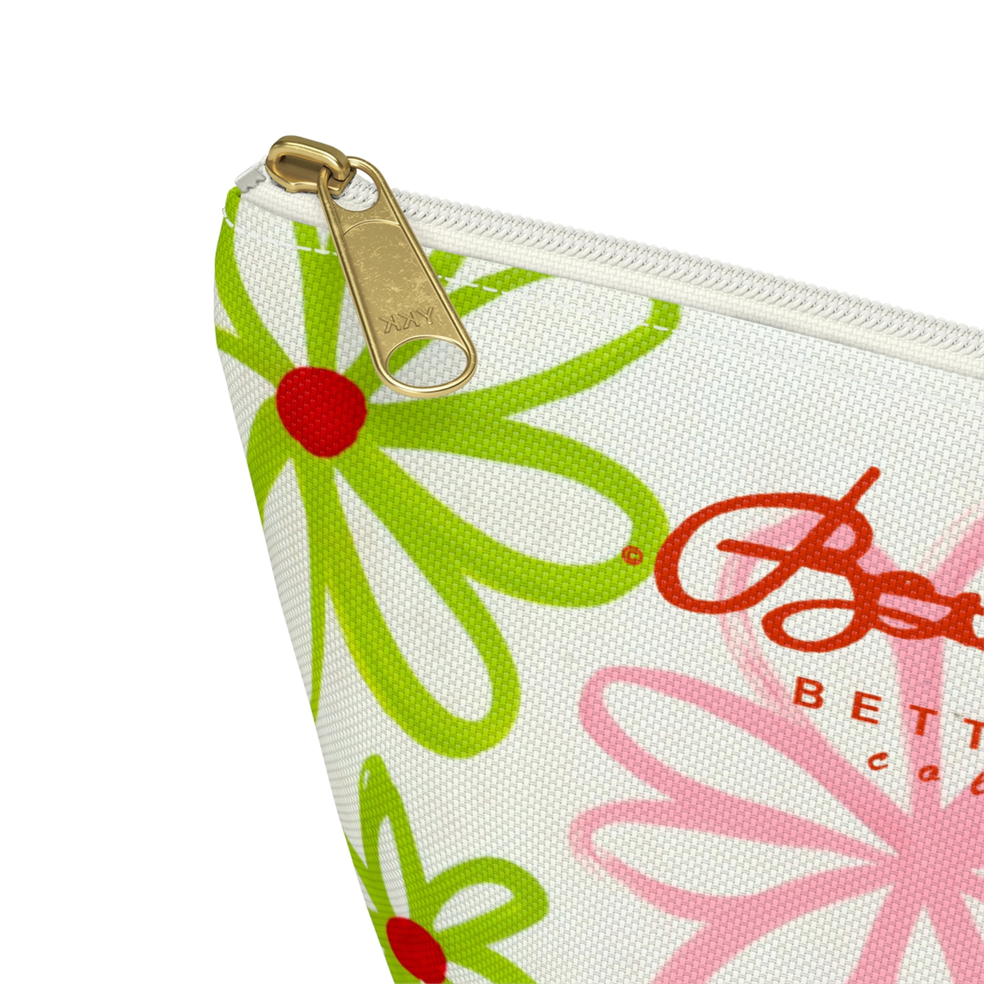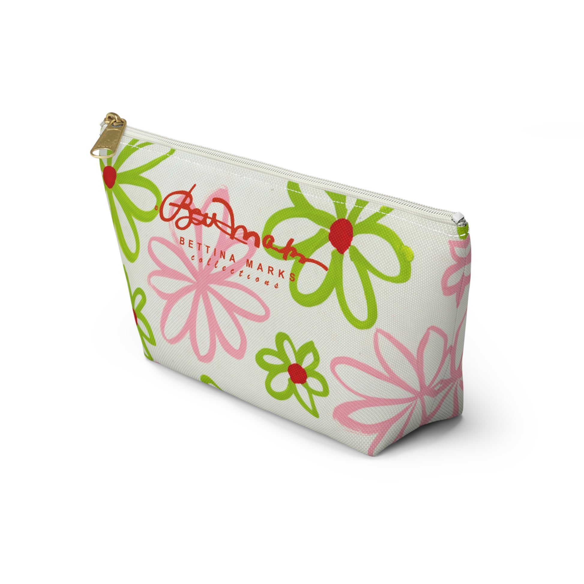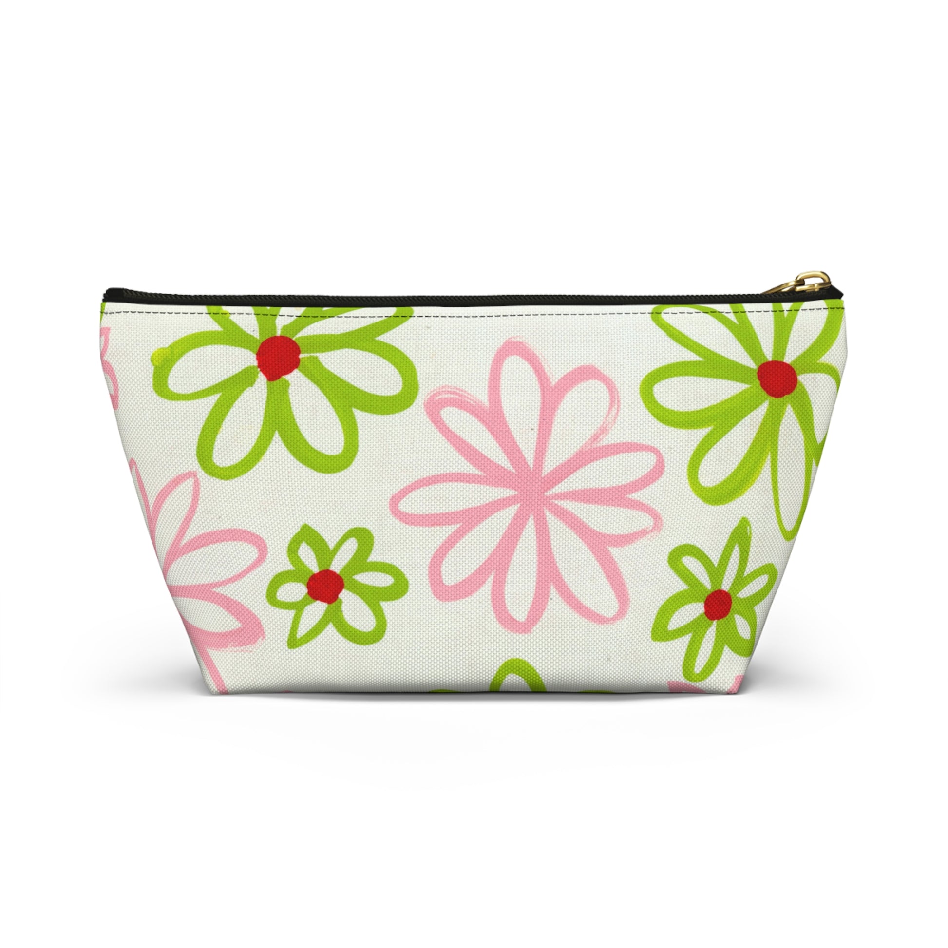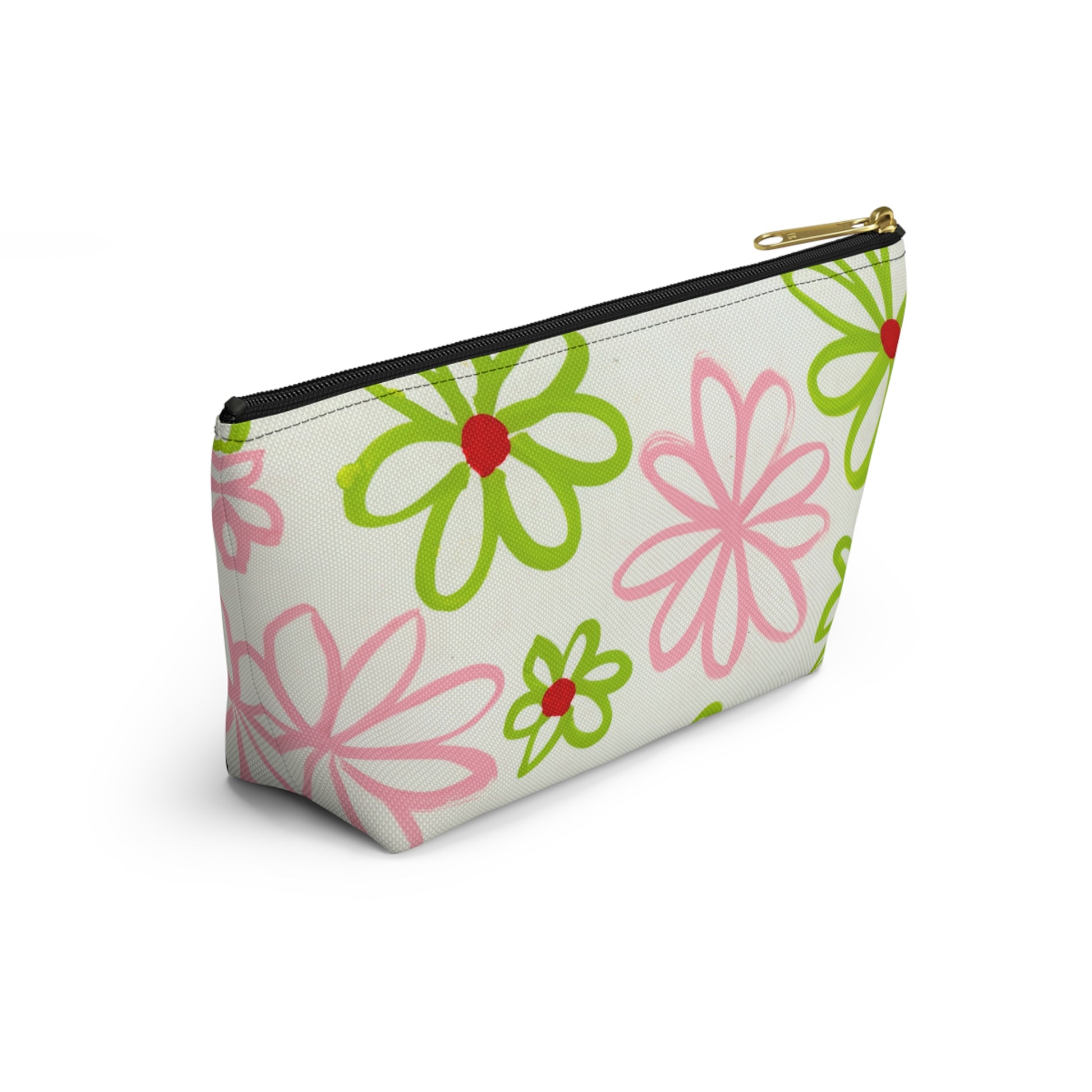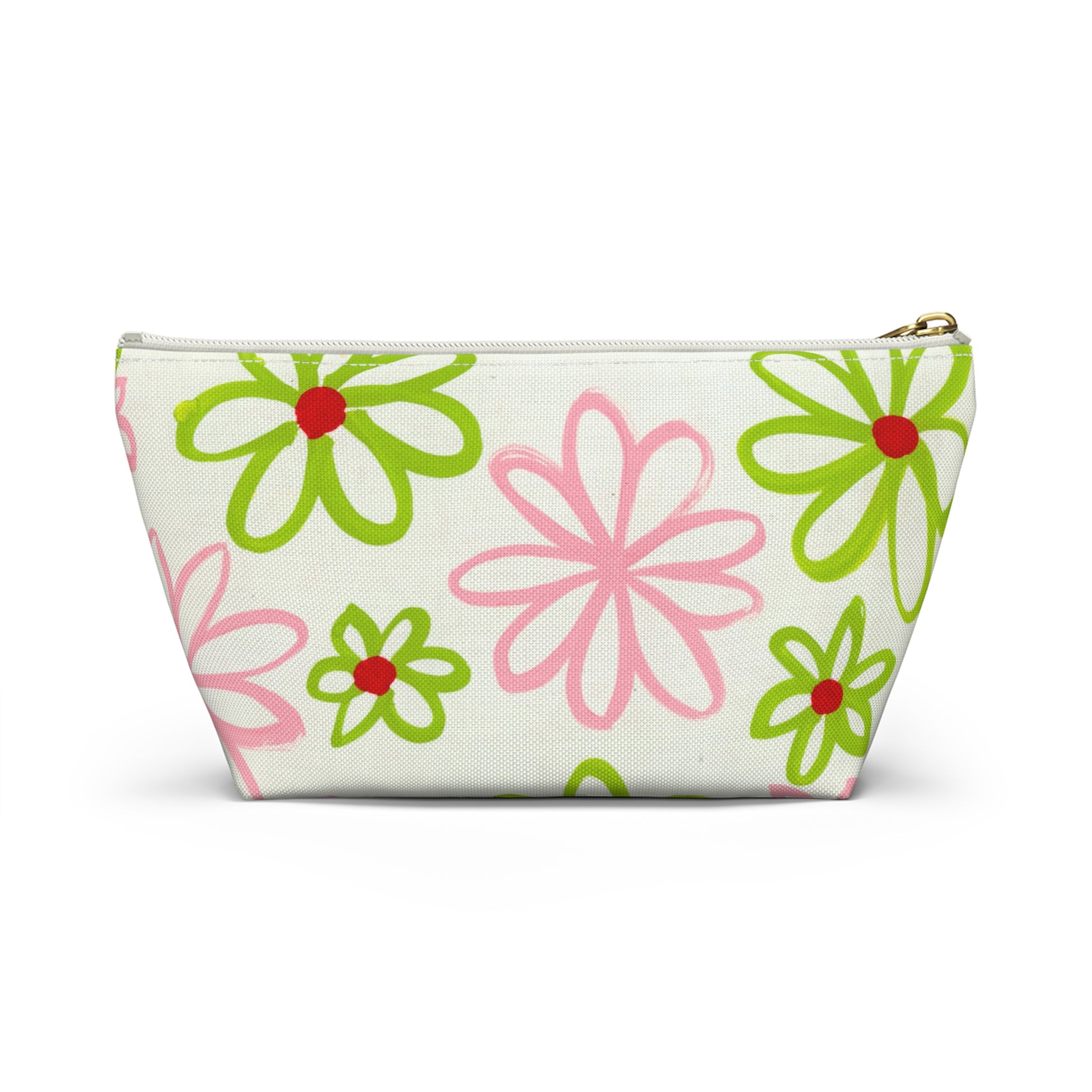 Pink & Green Daisies On White Accessory Pouch w T-bottom