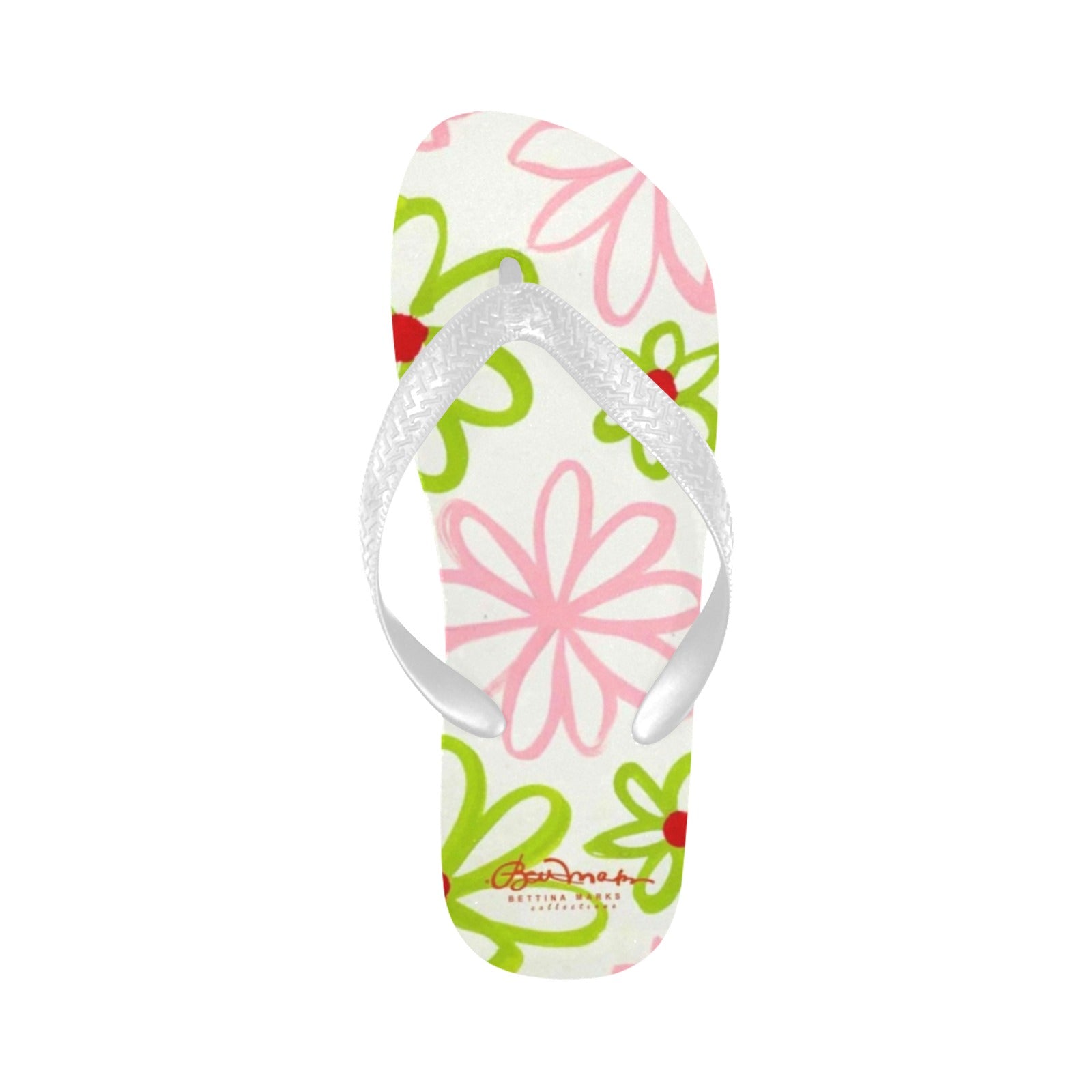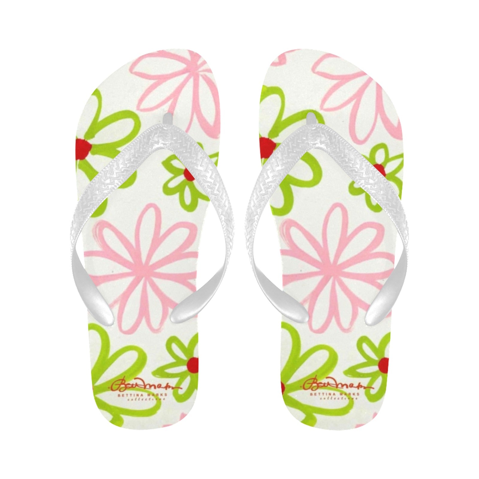 Pink & Green Daisies On White Flip Flops for Men/Women