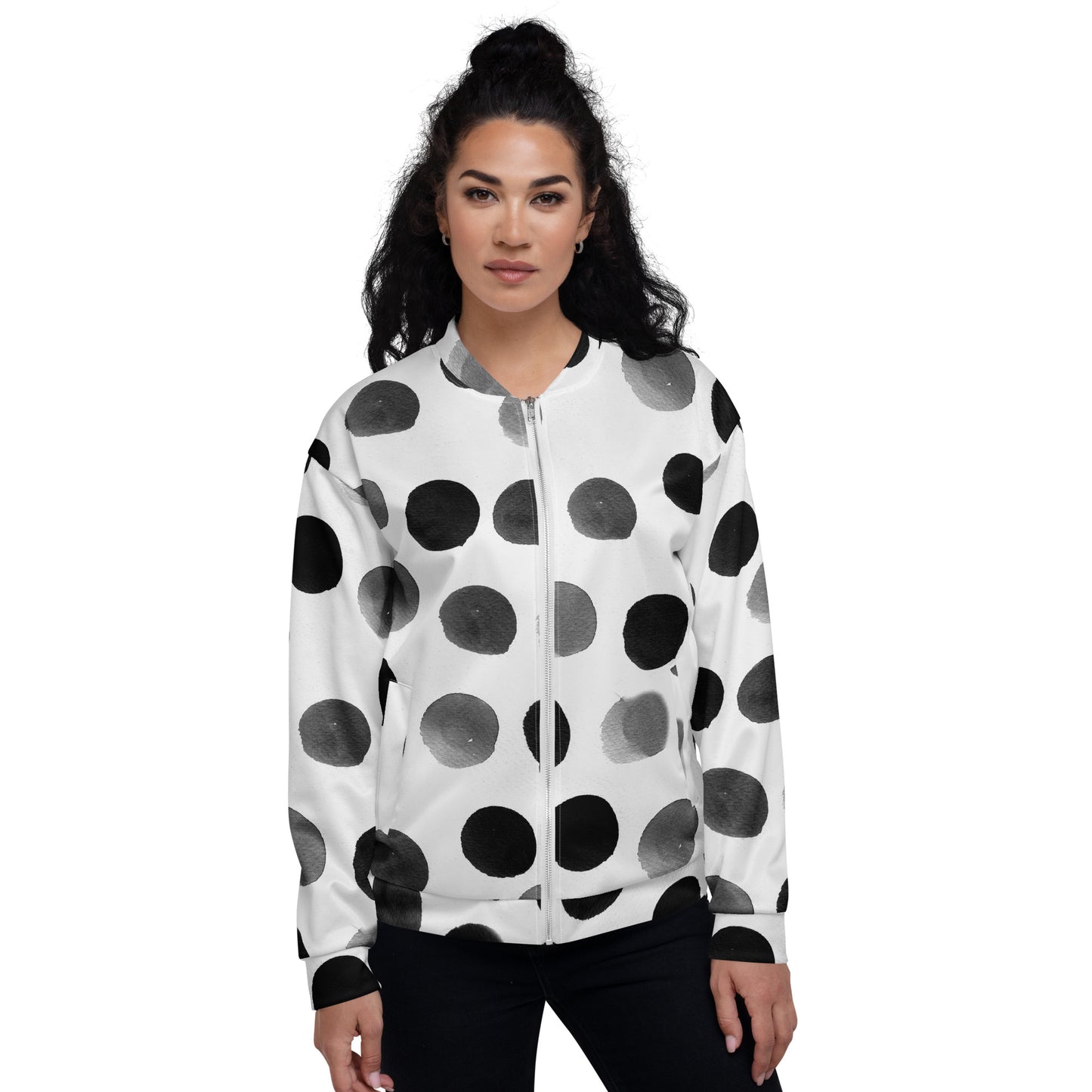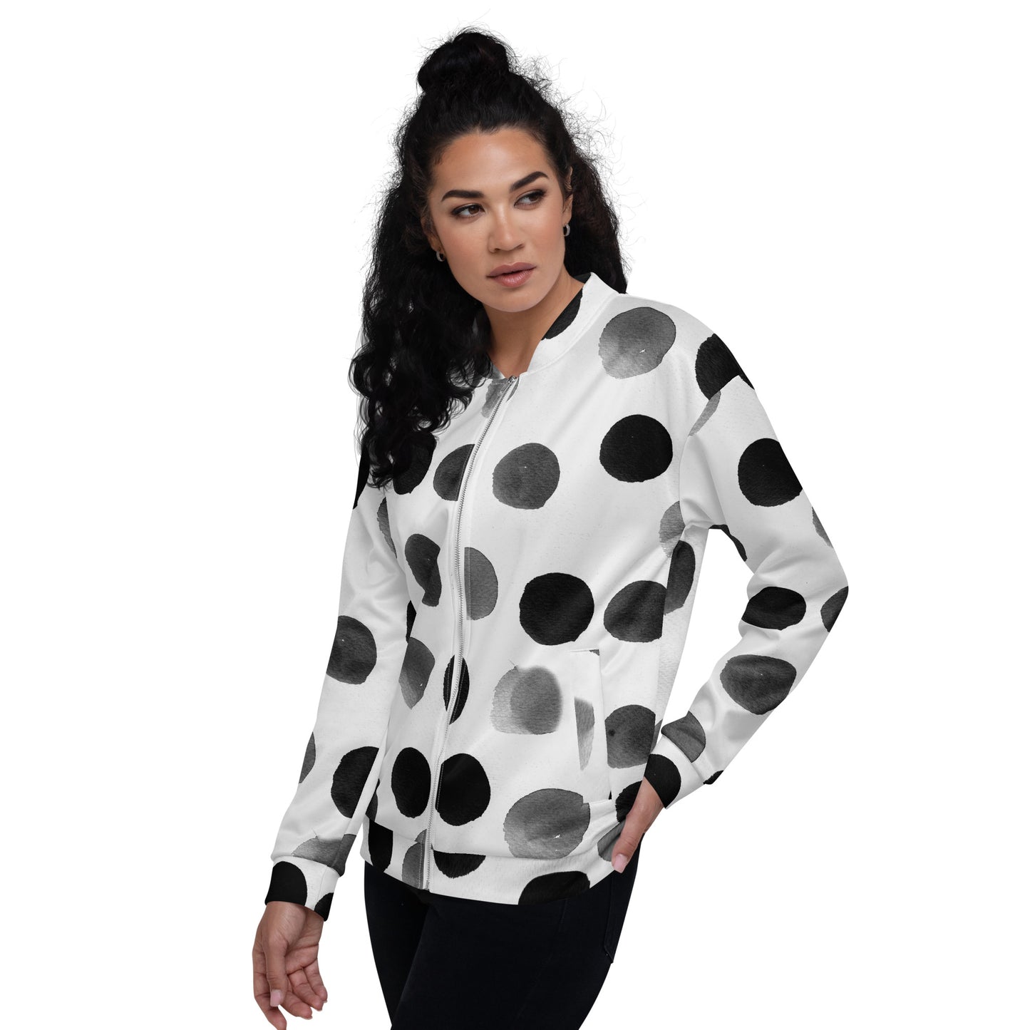 Unisex Bomber Jacket - Charcoal Polka Dot - Women